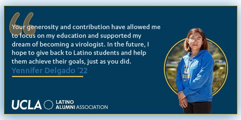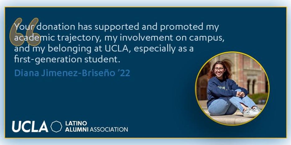 Thank you for supporting the UCLA Latino Alumni Association Scholarship and providing lasting and impactful opportunities for students to receive the best college experience at the #1 public University in the nation.