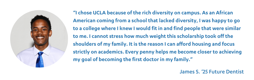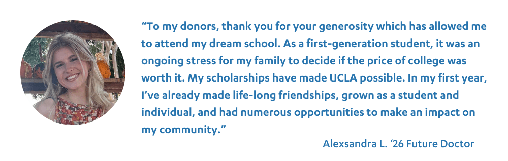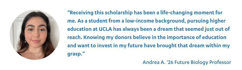 Unfortunately, students with great promise are being left behind due to the rising costs of higher education. Your gift to scholarships helps provide financial security, confidence, and the foundation for incredible students to achieve their dreams at UCLA and beyond.