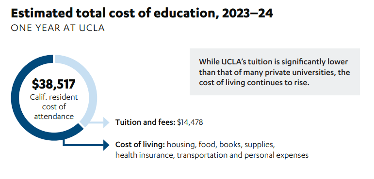 While UCLA's tuition is more affordable than private institutions, the total cost of attendance is still a challenge for many students. Scholarships allow students to focus on their college experience, rather than focusing on how to afford it.