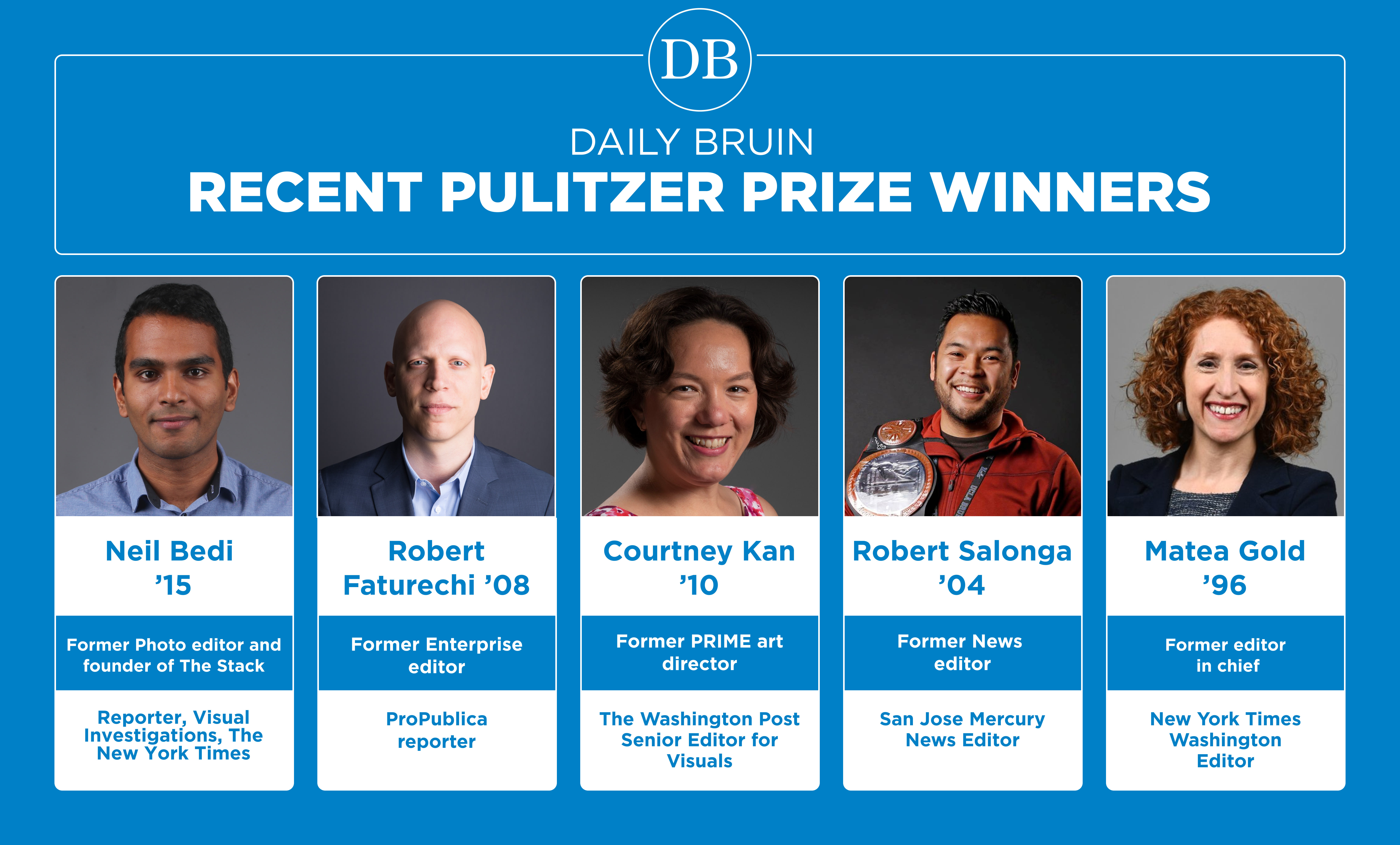 In addition to our Pulitzer Prize winners, Daily Bruin alumni include legendary comedian Carol Burnett '54, diplomat and Nobel Peace Prize winner Ralph Bunche '27, former politico and NPR president Frank Mankiewicz '47, New York Times Washington editor Matea Gold '96, longtime ESPN anchor Cari Champion '98, former National Geographic CEO Gary Knell '75, Federal Public Defender of California's Central District, Cuauhtemoc Ortega '03, and Frank Spotnitz '82, who wrote and produced "The X Files" and created "The Man in the High Castle".