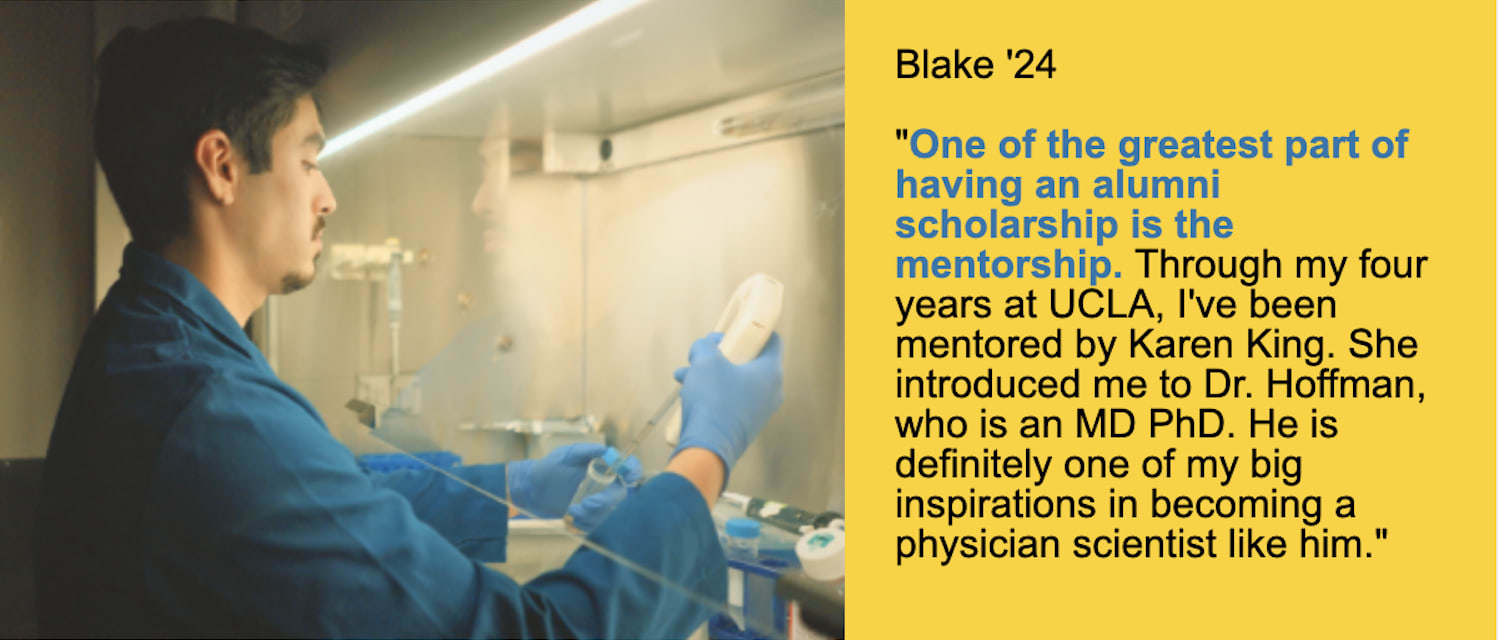 Your generosity turns potential into opportunity—helping Bruins excel, lead, and serve. Be part of the enduring alumni legacy and ensure UCLA continues to attract and support extraordinary students. Give to the Alumni Scholarship that reflects YOUR Bruin spirit.