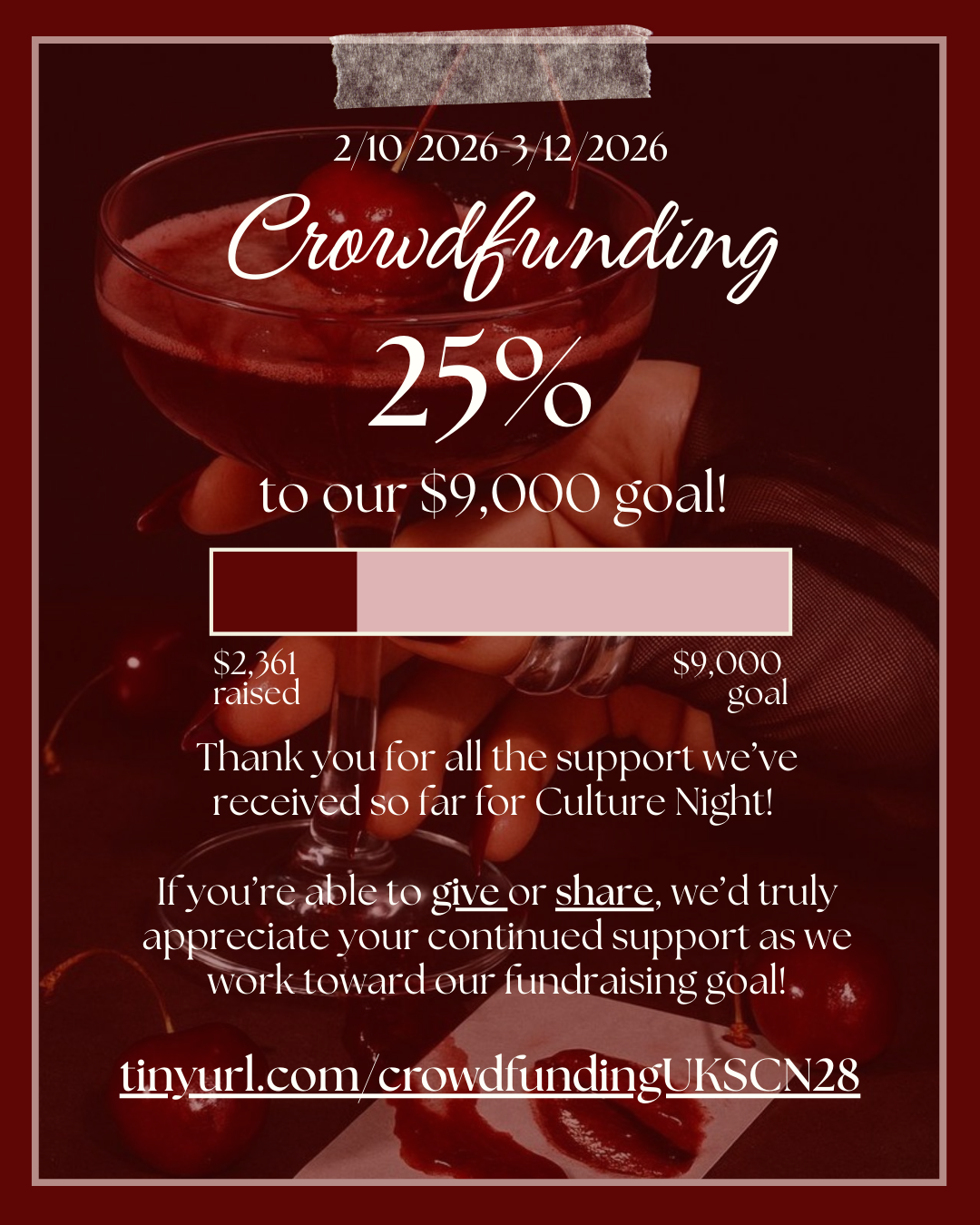 We humbly ask to keep the momentum going as we only have 22 days left of our campaign to raise funds for our show day by sharing the link: tinyurl.com/crowdfundingUKSCN28